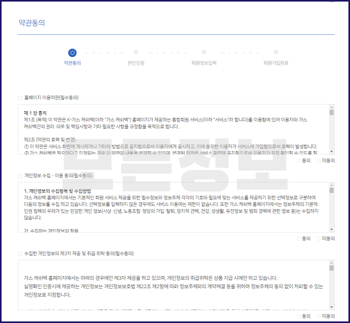 회원가입을 위한 약관에 동의를 진행합니다.