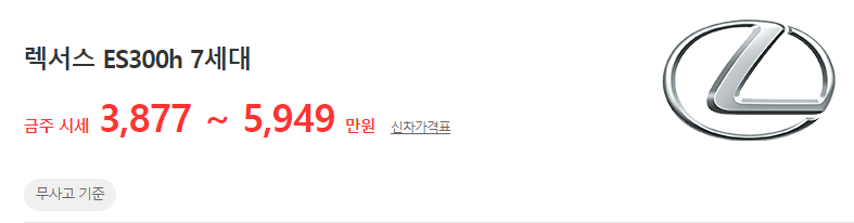 - 렉서스 ES 7세대 (2018 ~ 현재) : 3,877만원 ~ 5,949만원