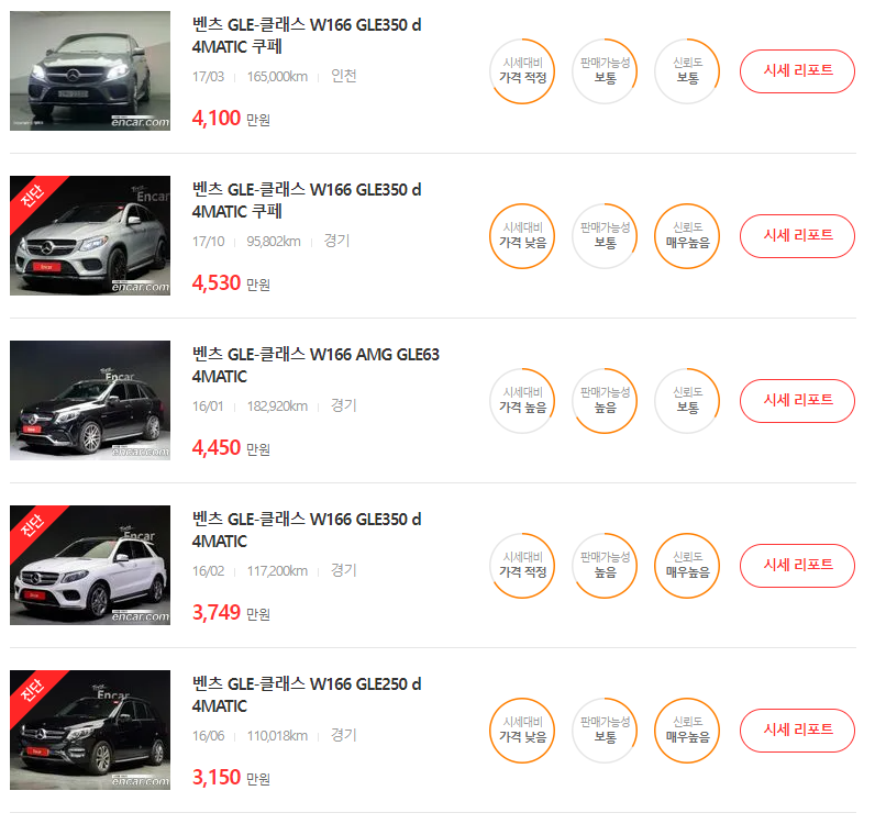 그렇다면 벤츠 GLE 중고차 가격에 대해서 한번 확인해 보도록 하겠습니다.