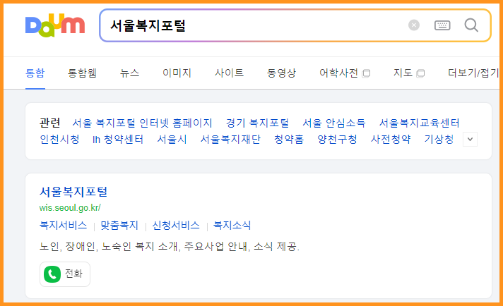 안심소득 신청을 위하여 각종 포털사이트에 '서울복지포털'을 직접 검색하여 해당 홈페이지에 접속합니다.