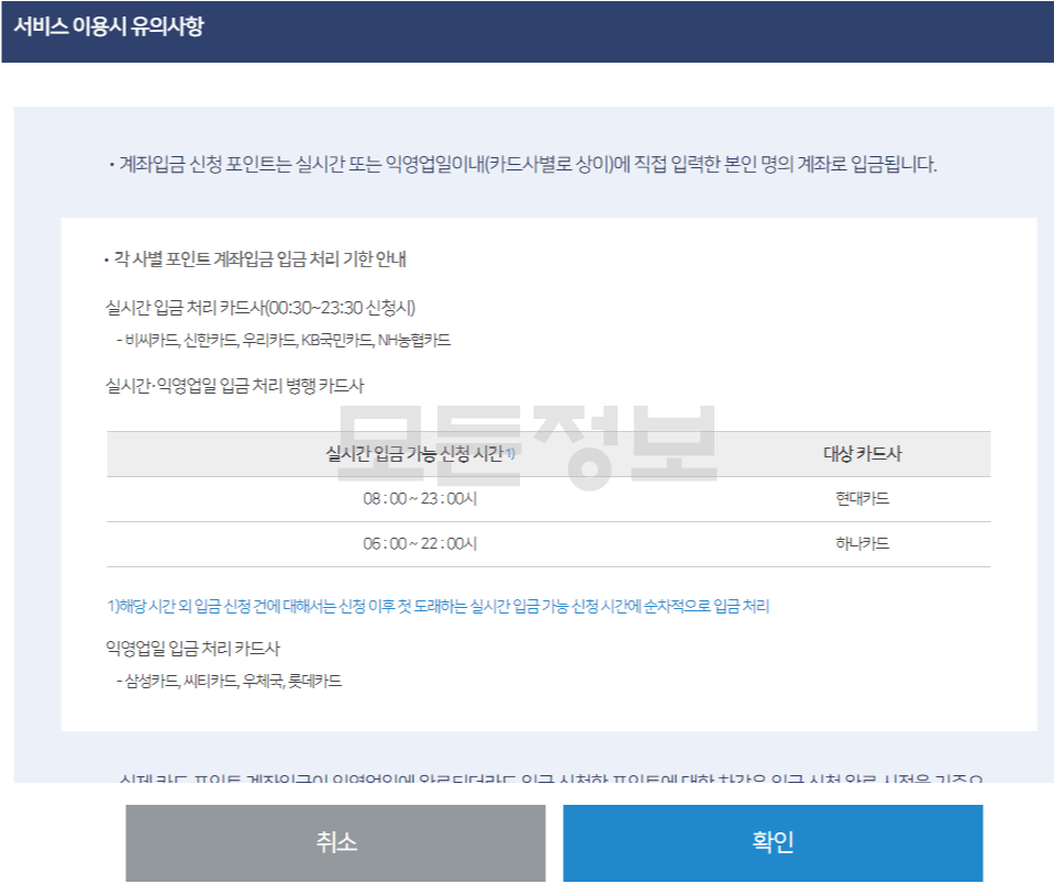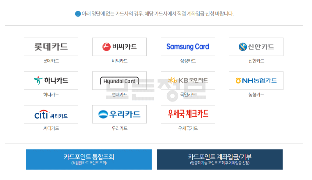 - 카드포인트 통합조회 서시스는 매일 00:00 ~ 24:00시 이용이 가능합니다.