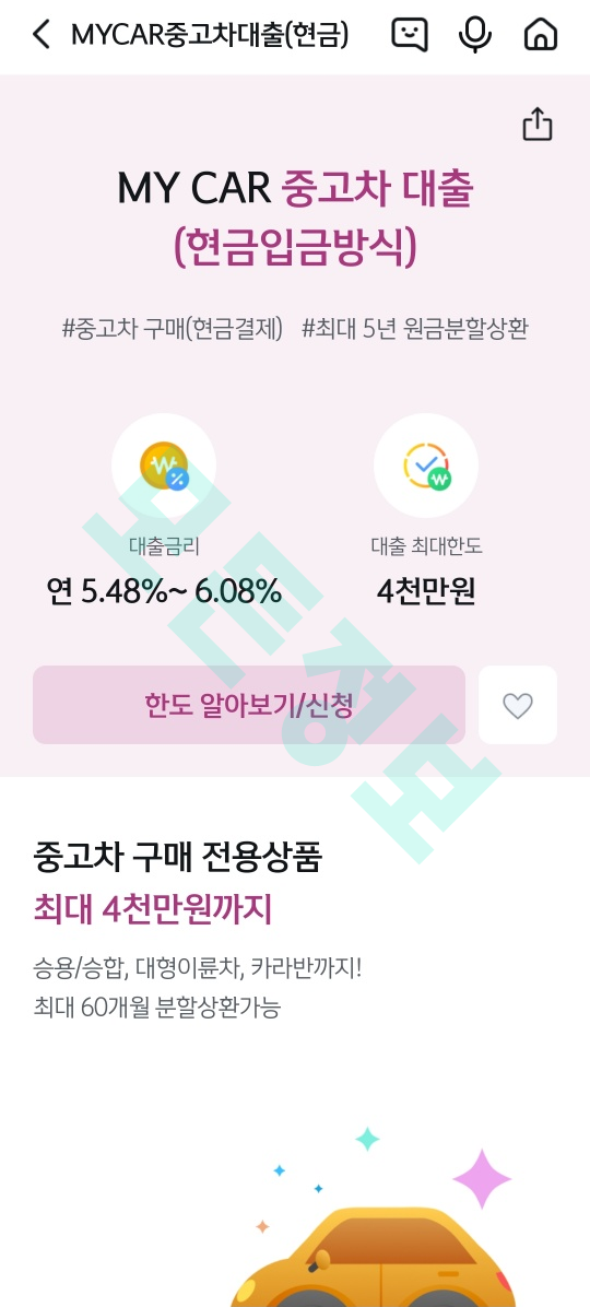 신한 마이카 중고차 대출 신청 방법 및 조건 금리