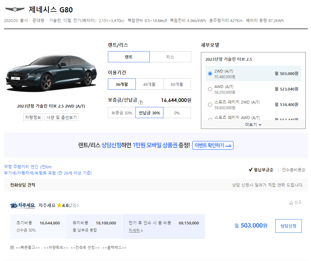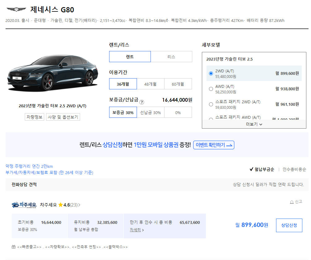 장기렌트 선납금 보증금 견적