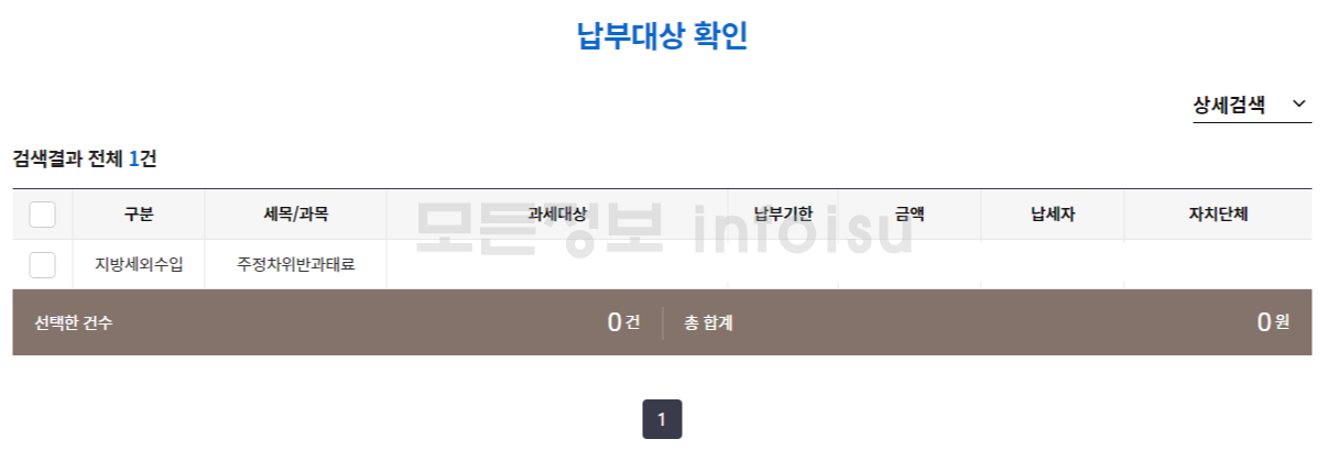 ③ 부과된 과태료 내역확인(지방세, 환경개선부담금, 지방세외수입 으로 구분하여 상세 검색 가능)