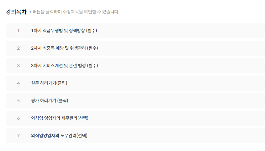 일반음식점 영업신고 후 다음 해부터 매년 받는 보수교육으로 한국외식업중앙회 온라인 교육을 통해 수료할 수 있습니다.