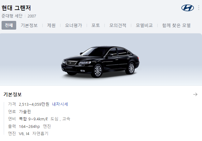 2007년 출시되었을때 신차기준 2,513만원부터 4,059만원까지 판매가 이루어 졌던 차량이며 옵션에따라 +@의 금액이 추가되었습니다. 그랜저는 1세대부터 현재까지 꾸준한 인기를 받고 있는 자동차로 "성공"이라는 상징적인 의미를 부여하기도 합니다. 그렇다면 오늘은 현대 그랜저 TG 중고차 가격을 한번 정리해 보도록 할 것입니다.