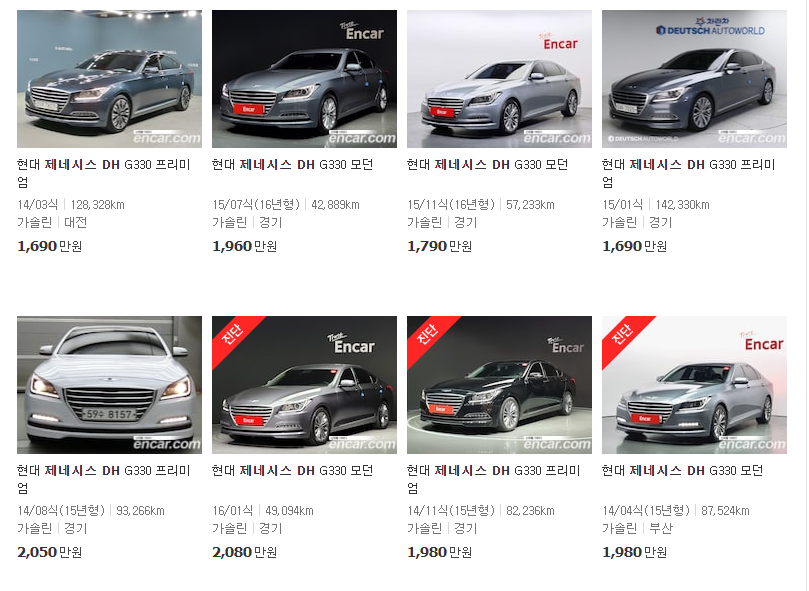 오늘은 제네시스 DH 모델의 중고차 시세를 한번알아 보려고 합니다. 제네시스 DH 모델은 가솔린 모델 G330, G380으로 나뉘며 2륜과 4륜으로 나누어 집니다.