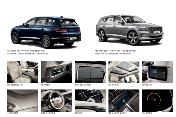 제네시스 GV80 가격표는 위와 같으며, 보다 상세한 옵션 등에 대한 가격표를 확인하고자 하신다면 아래를 통해 확인해 보실 수 있습니다.