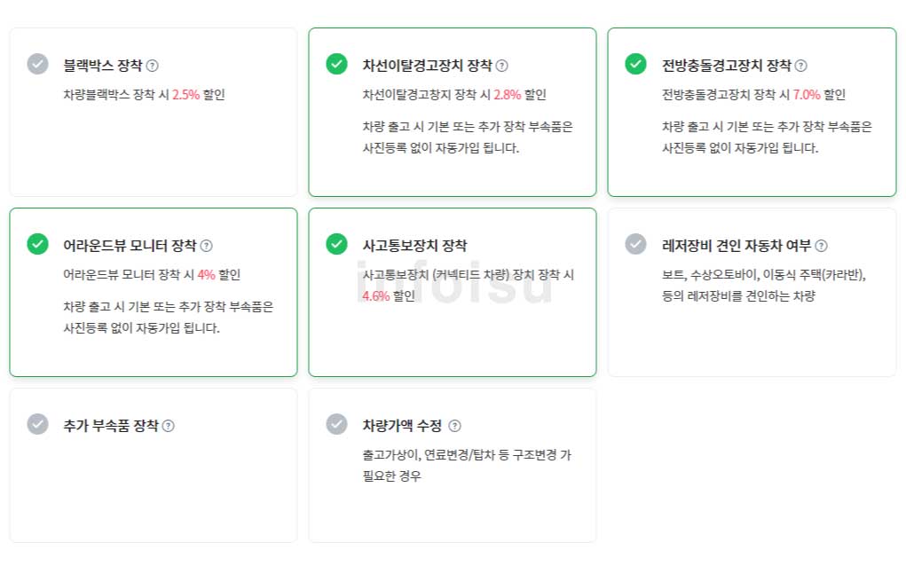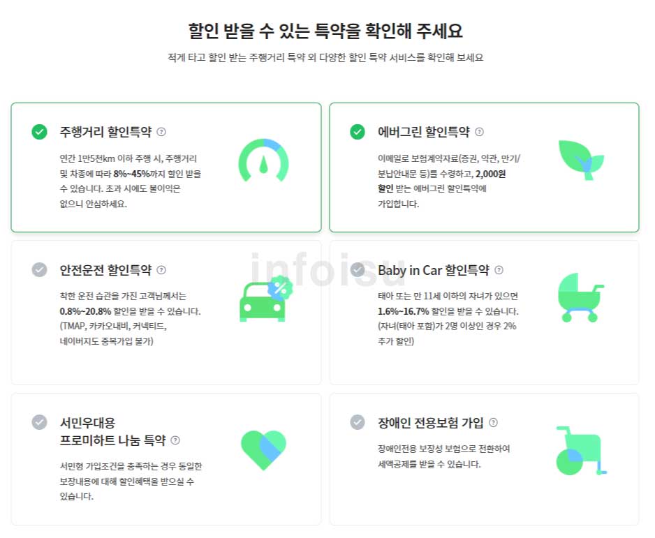 7. 할인 적용 가능한 특약사항에 대해서 내용 확인 및 선택