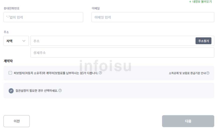 2. 보험료 계산을 위한 고객정보 동의(필수정보)