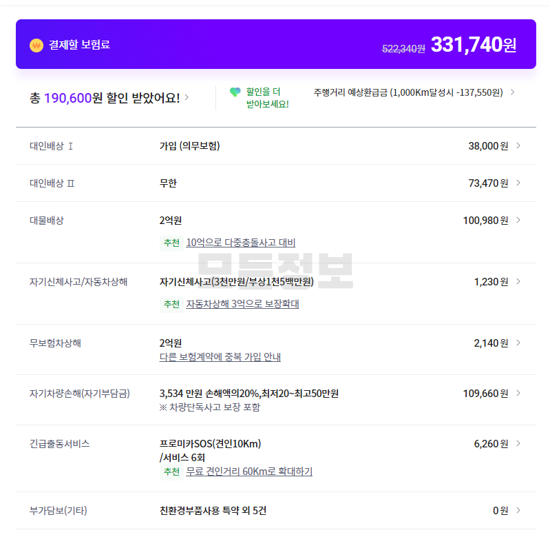 DB 다이렉트 자동차보험 보험료