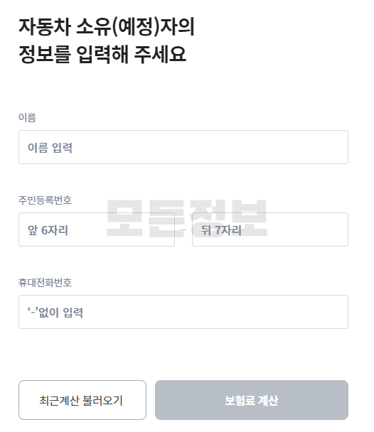 4. 보험료를 계산할 차량에 대한 선택(기존 차량 번호 입력 혹은 구매예정 차량 번호 및 차종 선택)