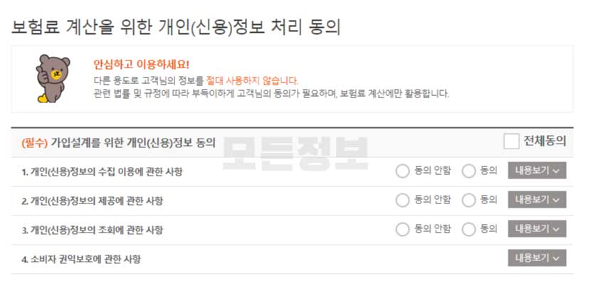3. 보험료 계산을 위한 개인(신용) 정보 처리 동의