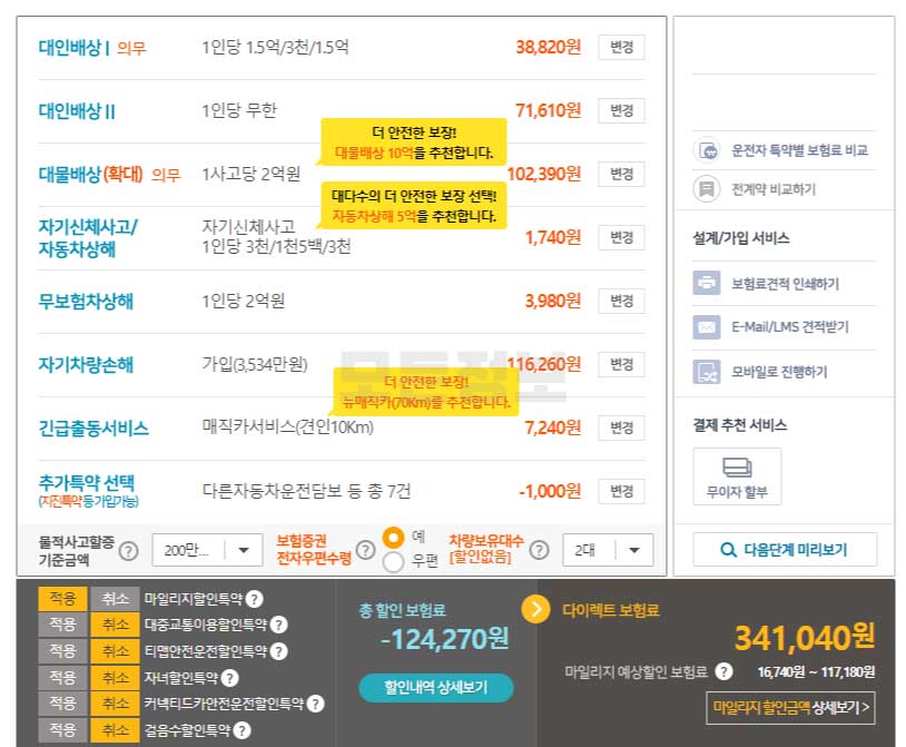 DB 다이렉트 자동차보험 가입 및 보험료 계산
