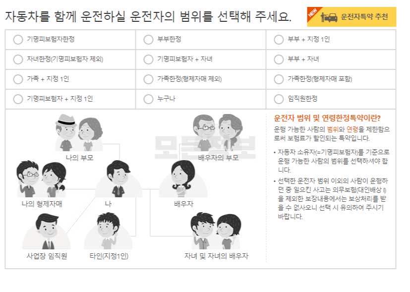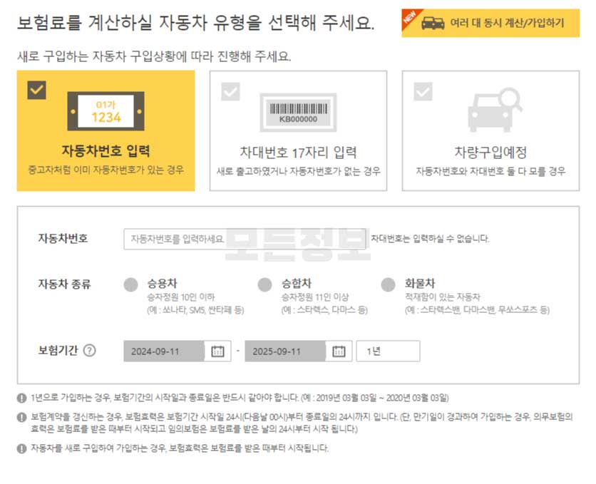5. 보험료를 계산할 자동차의 유형 선택(기존차량, 신규 구매 예정 차량 등)