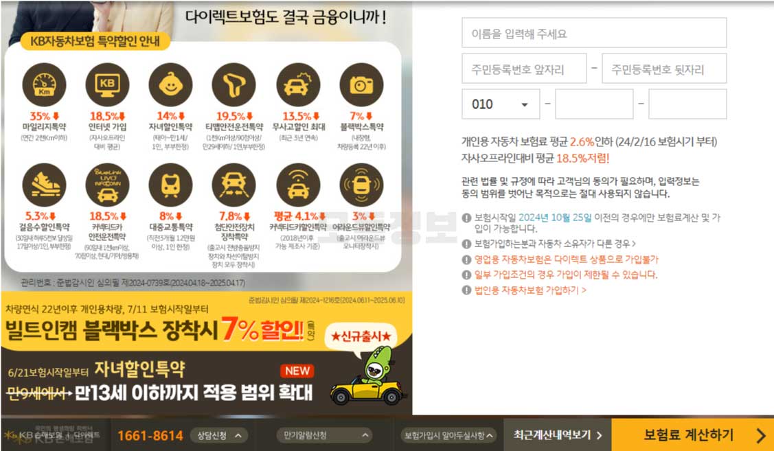1. KB 다이렉트 자동차보험 홈페이지 접속