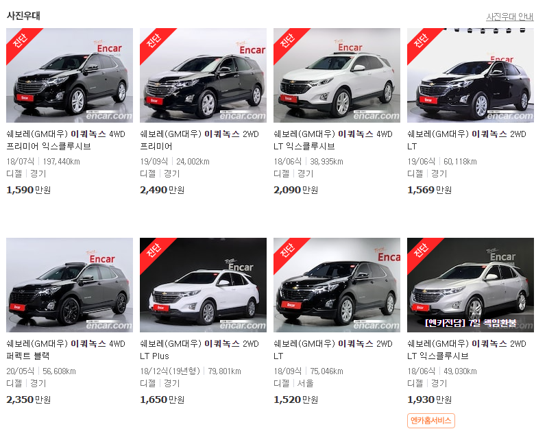 쉐보레 이쿼녹스 중고 가격  : 1,513만원 ~ 3,047만원(엔카)